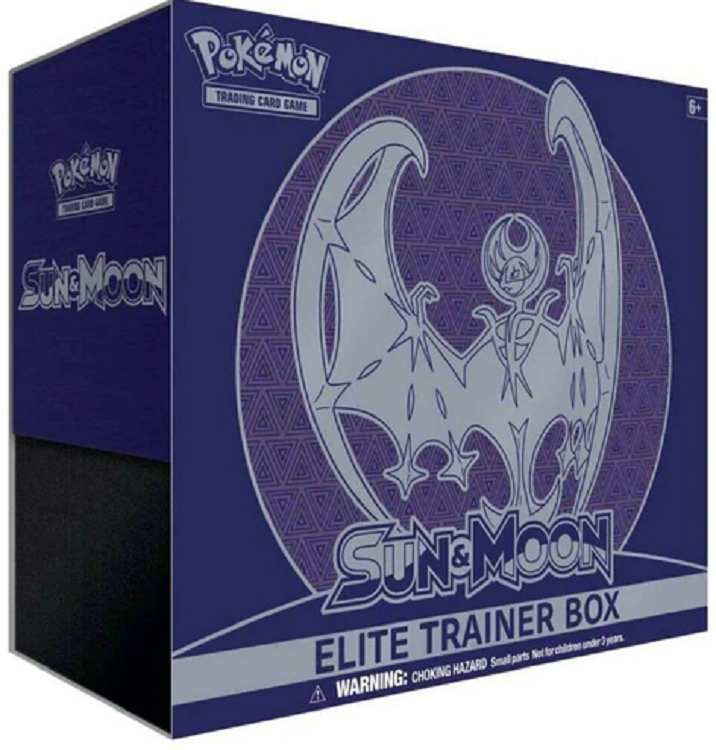 Pokemon TCG Sun & Moon (SM01) LUNALA ELITE TRAINER BOX (PURPLE) - FACTORY SEALEDPokemon TCG: Sun & Moon Lunala Elite Trainer Box (PURPLE BOX) FACTORY SEALED This Pokemon Elite Trainer Box contains: 8 Pokémon TCG: Sun & Moon booster packs65 card sleeves featuring Lunala45 Pokémon TCG energy cardsA player guide to the Sun & Moon expansion6 damage-counter dice1 competition-legal coin-flip die2 Acrylic condition markers and 1 acrylic GX markerA collector's box to hold everything, with 4 dividers to keep it organizedA code card for the Pokémon trading card game online