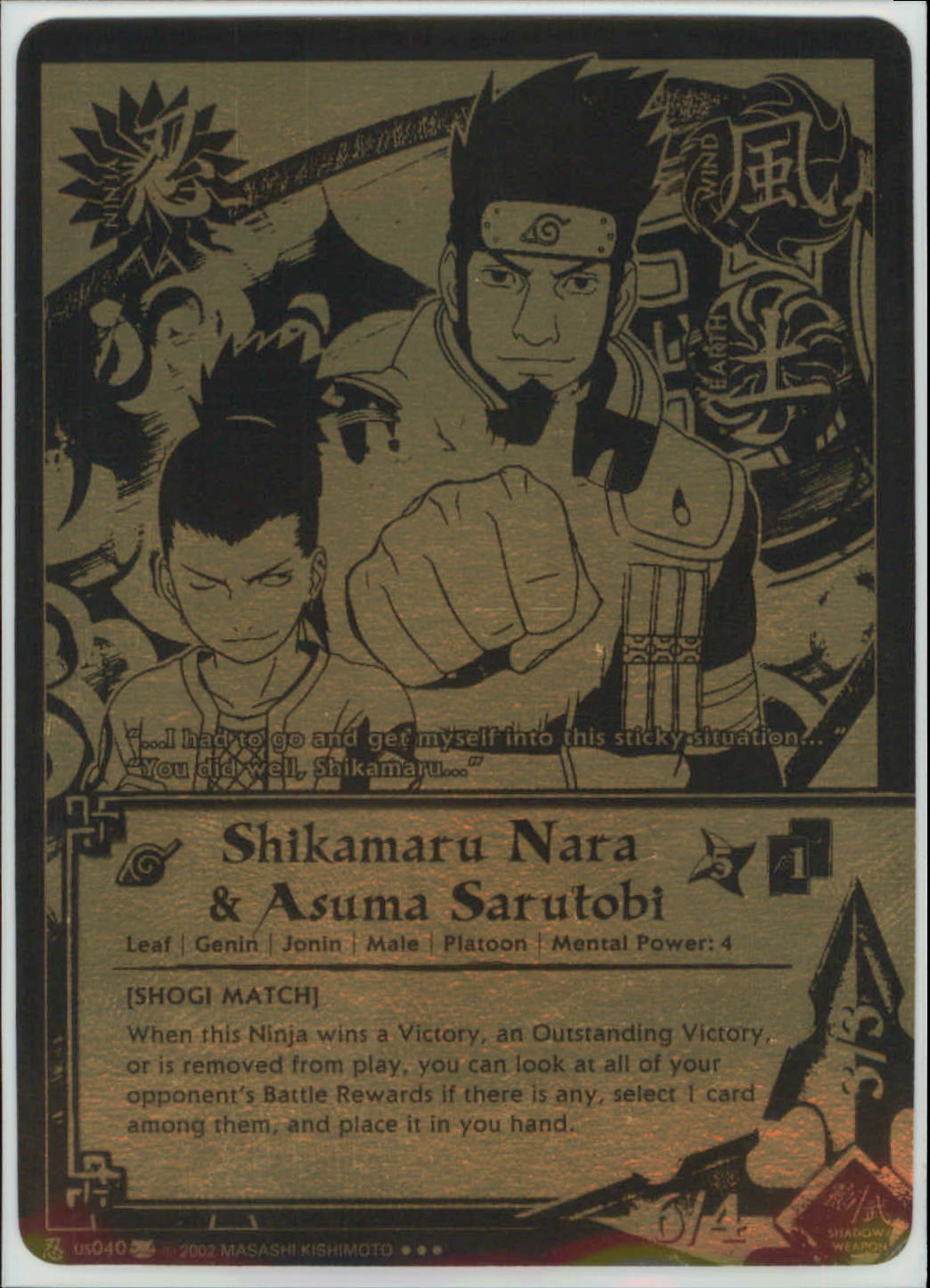PR N-US040 SHIKAMARU NARA & ASUMA SARUTOBI Exclusive Black & Gold Foil Naruto Promo Card
