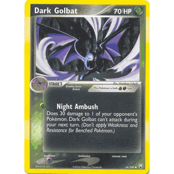 Pokemon EX Team Rocket Returns Uncommon Pokemon Card # 34 Dark Golbat Single Card Wherever darkness lurks, Team Rocket may rise again... With the reappearance of Dark Pokémon in the Pokémon TCG, Team Rocket blasts onto the scene with its mysterious Secret Machines and its own ferocious Pokémon!
